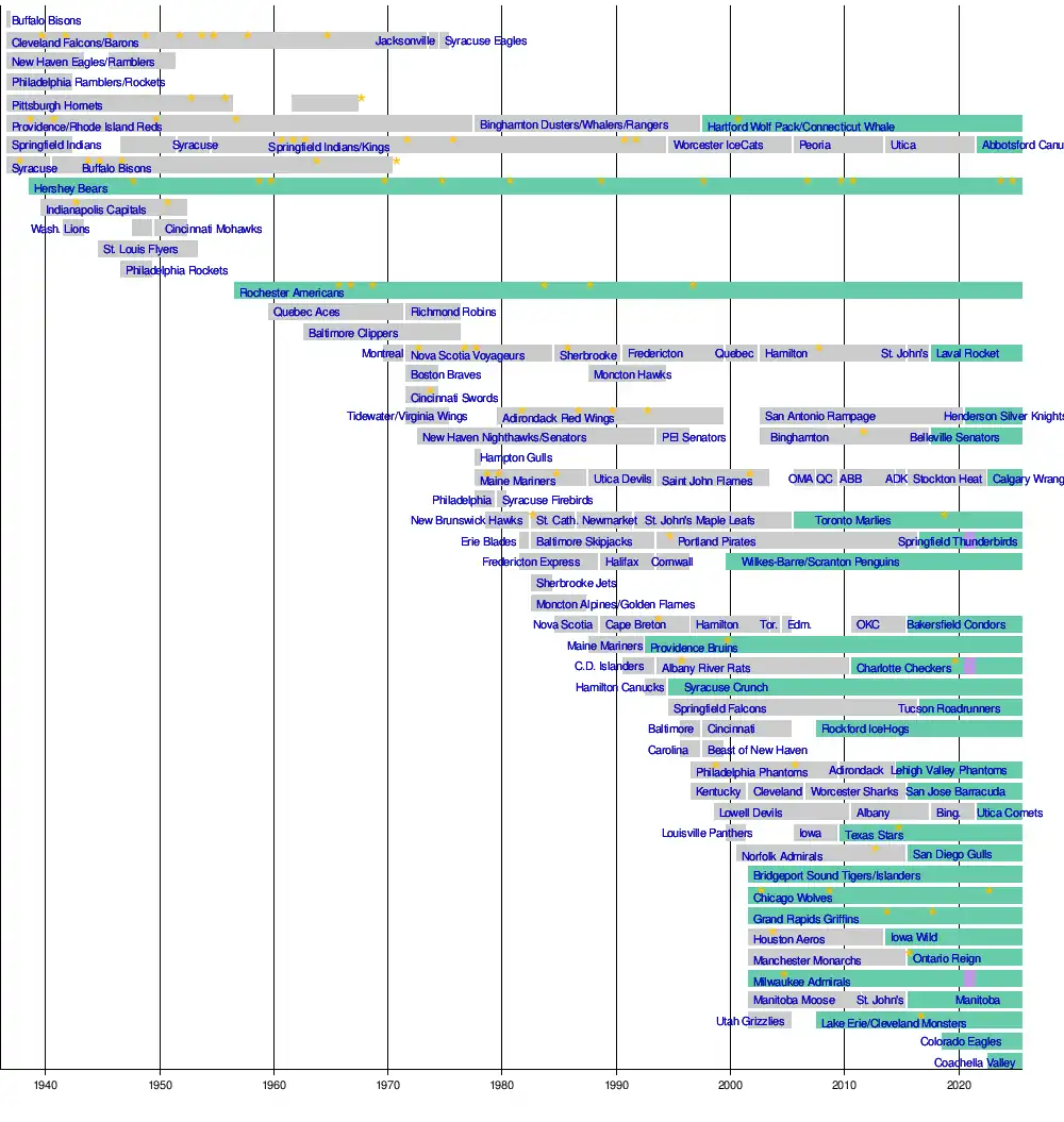 - New Haven Eagles (1936–43; folded during World War II resurrected 1945)