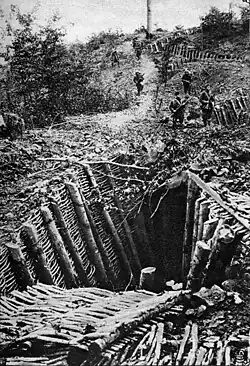Moving out of their trenches, the division fought continuously for 20 days during the Meuse–Argonne offensive. The division was the front line element of the Third U.S. Army. The Germans were well dug in after four years of trench warfare and had orders to hold the line at all costs. On 14 October at 5:30 am, the division broke through the maze of barbed wire and took the line of trenches forming the Hindenburg Line and moved on to the last German stronghold at Kriemhilde Stellung, where they reached the Meuse River. The 32nd was the first Allied Army unit to penetrate the Hindenburg Line. They then captured Côte Dame de Marie, the key to all the defenses in the area. Over the next five days the division continued to advance while under nearly constant machine gun and artillery fire. The 32nd Division defeated 11 German divisions in the Argonne fighting, including the fearsome Prussian Guards and the German Army's 28th Division, known as Kaiser's Own. The offensive cost the division 5,950 casualties.[6][13]