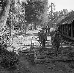 Early in July 1944, the division started to fly into Myitkyina airfield in North Burma, with 72nd Brigade being the first formation to land. On 1 September 1944, shortly after the division had started advancing down the "Railway valley" from Mogaung towards Indaw on the right flank of NCAC, the division was renamed the British 36th Division.[1] On 14 December, a third brigade was added to the division; confusingly, this was the first Indian formation that the division commanded (the 26th Indian Infantry Brigade, of one British and two Indian battalions).[5]