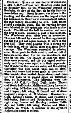 - ^ "Football: Queen of the South Wanderers v 5th K.R.V.". Dumfries & Galloway Standard: 5. 12 September 1883.