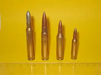 From left to right 7×64mm, 7.92×57mm Mauser, .243 Winchester and .222 Remington