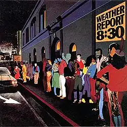8:30 is the second live album from the jazz fusion group Weather Report, issued in 1979 by ARC/Columbia Records.[2] The album rose to No. 3 on the Billboard Jazz Albums chart and No. 47 on the Billboard 200 chart.[3][4] 8:30 also won a Grammy Award for Best Jazz Fusion Performance.[5]
