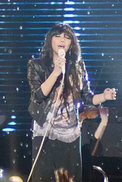At the end of March 2009, the Star World Tour ended at the Taipei Arena.[186] The tour lasted a year and five months and held 20 performances in 13 cities, attracting an audience of 500,000 spectators.[186] A-Mei became the first Chinese singer to perform five consecutive concerts with the same theme at the Taipei Arena.[187] She released her fifteenth studio album, Amit, on 26 June 2009, which was her very first album to be released under her aboriginal birth name.[188] This album showed a significant change in the genre of music A-Mei sung, as most of the songs incorporated hard rock music. The songs in the album extensively touch on serious topics such as personality conflicts, lost family ties, human sexuality, female consciousness, homosexuality, among others. The commercially successful album sold over 120,000 copies in Taiwan and topped the G-Music charts for three nonconsecutive weeks, while sales across Asia exceeded 1.3 million.[189] On 5 September 2009, she became the spokesperson for the 2009 Summer Deaflympics held in Taipei and participated in the opening ceremony as a guest, singing the theme song "Dreams You Can Hear (聽得見的夢想)."[190] In November 2009, she embarked on her fifth concert tour, Amit First Tour, which visited Taiwan, Mainland China, Hong Kong, Macau, Japan, Singapore, and Malaysia. In March 2010, she was paid nearly ten million yuan to become the spokesperson of Coca-Cola in Taiwan.[191] At the 21st Golden Melody Awards, A-Mei became the most decorated artist that night with the album Amit winning a total of six trophies.[192] The last time A-Mei had received a major Golden Melody Award was when she won the Golden Melody Award for Best Female Mandarin Singer in 2002 for her album Truth eight years prior.