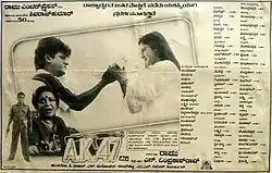 A. K. 47 is an Indian action film directed by Om Prakash Rao and produced by Ramu. The film, which was the first film to use DTS in Kannada cinema, stars Shiva Rajkumar, alongside Chandni, Om Puri and Girish Karnad. The music was composed by Hamsalekha, while cinematography and editing were handled by P. Rajan and S. Manohar respectively.[2] The film was simultaneously made in Kannada and Telugu with P. Sai Kumar playing Shiva Rajkumar's role in Telugu version.[3][4]