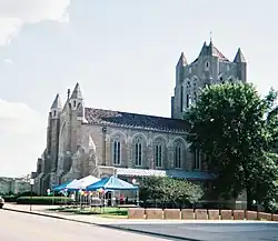 • Aquinas Academy (340 North Main Street) - This is the parish elementary school of the next-door Blessed Sacrament Cathedral. It was originally known as Saint Benedict School, then as Blessed Sacrament School, until 1995, when its name was changed to Aquinas Academy due to a reorganization of the diocesan elementary schools. The oldest portion of the building, fronting Main Street, is a two-story red brick structure from 1904. There are also 1954 and 1961 additions, both fronting on Pennsylvania Avenue. A 1962 addition, set back from Main Street, was intended to serve as a convent.