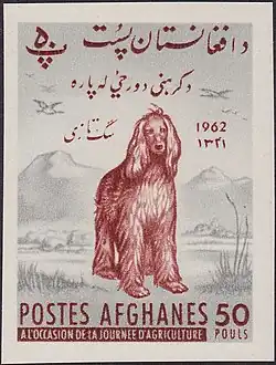 The Afghan Hound depicted on a postage stamp from Afghanistan (1962)