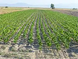 North Macedonia possesses 10,140 km² of agricultural land, which is almost 39% of its territory. Half of this land is devoted to crop growing, and the other half livestock farming. The country has 48,606.75 hectares of forests.[17] Macedonia distinguishes itself by the smallness of its agricultural properties: 80% of them are between 2.5 and 2.8 hectares, and are divided into small parcels. The former state-owned businesses, which are much bigger, are generally in financial difficulties due to incomplete privatisations.[2]