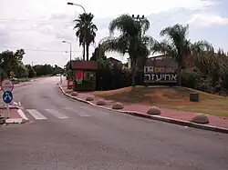 Ahi'ezer (Hebrew: אחיעזר) is a national religious moshav in the Central District of Israel. Located near Lod, it falls under the jurisdiction of Sdot Dan Regional Council. In 2023 it had a population of 2,179.[1]