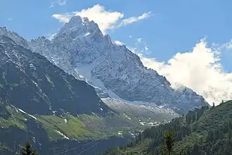 The Aiguille du Chardonnet (3,824 m) is a mountain in the Mont Blanc massif in Haute-Savoie, France. It lies between the Glacier du Tour and the Argentière Glacier. The border with Switzerland (elevation: 3,680 m at its nearest point) runs just east of the summit. The East or Forbes Arete provides a popular and classic mountaineering route to the summit.
