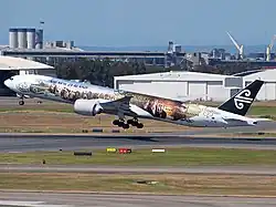 Boeing 777-300ER ZK-OKP with "The Airline of Middle-earth" livery at Brisbane International Airport