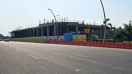 Airport City (otherwise known as KIA West Station) is an upcoming at-grade metro station on the north-south corridor of the Blue Line[1] of Namma Metro in Bangalore, India. This will be an important metro station that will comprise many commercial infrastructures that will be developed by BIAL, including the KIA Air Traffic Control Tower, Nadaprabhu Kempegowda Statue, a few catering manufacturing companies including SATS, Air India's SATS, Blue Dart Express, and IndiGo Hangar for maintenance and training purposes. This metro station is to become operational around June 2026.[2][3][4][5]