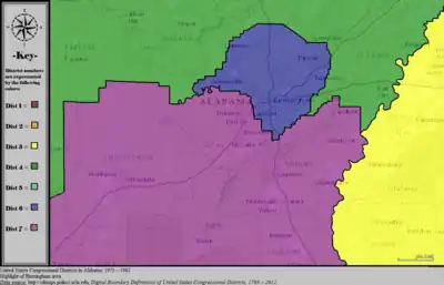 Since the 1973 redistricting following the 1970 U.S. census, Alabama has had seven congressional districts. This is three fewer districts than the historic high of ten congressional districts just prior to the 1930 census.