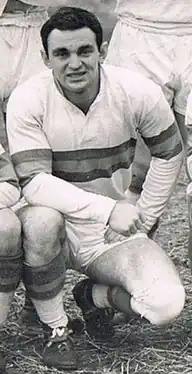 "Outlines – Albert Firth – Albert is one of many players on our present register who commenced his career as a member of the Wakefield City Schools' side. Unlike the majority, however he had to seek his Rugby League football at that stage, for his school in Stanley did not play Rugby. Whilst with the Wakefield City Schools' team he gained County honours against Cumberland. In those days he played in the forwards; a number of occasions being at loose forward. Schooldays over, he naturally joined his local team – Stanley Rangers – for whom he made several appearances at centre three-quarter. In whichever position he played, however, his work was so successful that Trinity secured his signature at sixteen years of age. Albert signed for Wakefield Trinity in July, 1953 and, after a short period in the "A” team, made his senior début in November 1953 against Huddersfield here at Belle Vue. There was another appearance in the senior team during that season, but in the following campaign he made his mark and from there he has not looked back. In his first full season of 1954–5, he made thirty appearances and scored 13 tries – his most successful term until this present season. In September he made his County début for Yorkshire against Cumberland at Hull and there are strong hopes that this will form only the first of many similar representative appearances. Still only in his early twenties, with 127 first team appearances (and over forty tries) behind him, he still has much to give Trinity in the important seasons ahead. The continuance of his career and the further fulfilment of much promise will be watched with interest and satisfaction"[7]