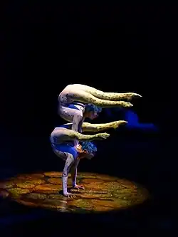 • Contortion: Two artists create graceful and lithe figures and movements with their extreme flexibility and balance. The original act consisted of one contortionist.