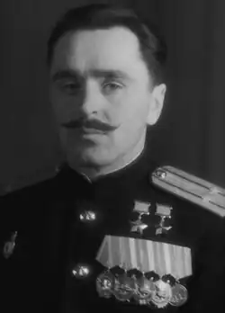 Aleksey Yefimovich Mazurenko (Russian: Алексе́й Ефи́мович Мазуре́нко; 20 June [O.S. 7 June] 1917 – 11 March 2004) was the commander of the 7th Guards Assault Aviation Regiment in the Black Sea Fleet during World War II. He was twice awarded the title Hero of the Soviet Union during the war and remained in the military afterwards, reaching the rank of General-major.