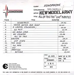 2. ^ Leonard, Michael. "Review: New Model Army, All Of This The "Live" Rarities". Q (July 1999). EMAP Metro Ltd: 148.