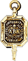 The society's key is gold and features a five-point star, laurel branches, the Greek letters ΑΒΚ, and the words "Integrity" and "Excellence".[5]