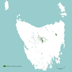 Approximately 111 700 ha of Tasmania is alpine and subalpine habitat (2%). Australia wide, there is only 198 400 ha meaning 56% of Australia's alpine & subalpine habitat is restricted to Tasmania.[3] The altitude at which alpine vegetation occurs ranges from 750m in the southwest to 1400m in the northeast.[2]