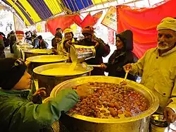 En route to the cave, various non-governmental organisations have set up food supply and resting tents called pandals which are available for free to the pilgrims. Near the shrine, hundreds of tents which are erected by locals can be hired for a night's stay.[33]