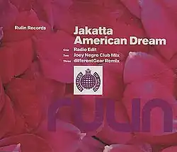 7. ^ American Dream (UK cassette single sleeve). Jakatta. Rulin Records. 2001. RULIN15MCS.{{cite AV media notes}}: CS1 maint: others in cite AV media (notes) (link)