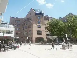 This shopping centre is the largest in Amsterdam. It is located near the Amsterdam Bijlmer ArenA railway station and the ArenA Boulevard (Amsterdam ArenA, Heineken Music Hall, Pathé ArenA), adjacent to the Bijlmermeer neighbourhood, noted for its multicultural population.[1] In the shopping centre there is a location for the Tickets & Service room for the railway station. There are also 225 shops. The public spaces on the Amsterdamse Poort were designed by the Dutch landscape architects Karres en Brands.[2]