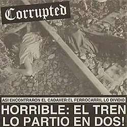 Anciano (Spanish for old man) is an EP by the Japanese doom metal band Corrupted. Because the Spanish phrase "Horrible: El Tren Lo Partió En Dos!" ("Horrible: The Train Cut Him In Two") appears on the cover, the phrase is often mistaken to be the title of the EP.[1] The album was pressed four times on 7-inch vinyl; the first two using a black and white cover, the third blue, and the fourth brown.[2] "The Post War Dream" is a cover of the Pink Floyd song that opens their 1983 album The Final Cut.