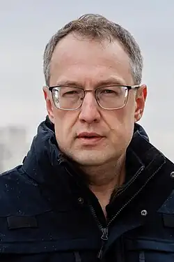 Anton Yuriyovych Gerashchenko (Ukrainian: Антон Юрійович Геращенко, romanized: Anton Yuriyovych Herashchenko, born 10 February 1979) is a current official advisor and a former deputy minister at the Ukrainian Ministry of Internal Affairs.[1][2][3][4] He is a former member of the Ukrainian parliament (Verkhovna Rada) from 2014 to 2019,[3][5] and was the subject of an assassination attempt in part because of his actions, which was prevented by the SBU.[6]