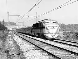It seems that the key Oriol's business focus was on Tren Articulado Ligero Goicoechea Oriol (TALGO), the new manufacturing and transportation railway company launched by his father jointly with Alejandro Goicoechea in 1942.[56] Since the mid-1940 it was already an exclusive family enterprise,[57] but due to cash shortages and technological problems the company was struggling to launch large scale high-speed train services. As TALGO was unable to address production problems domestically, manufacturing was contracted in the United States. Oriol is known to have spent some time in New York,[58] where he signed a contract with American Car and Foundry[59] and supervised production of locomotives and the rolling stock for the train known as Talgo II.[60]