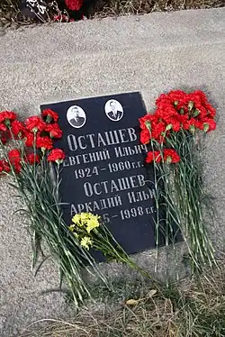 Ostashev died on 12 July 1998, in Moscow. Personal will and testament Arkady Ilyich Ostashev was cremated for burial in the grave of the elder brother Yevgeny. In December 1998, after obtaining the relevant approvals and permits from the leadership of Kazakhstan dust Ostashev was moved by his wife and son to Baikonur (city) and buried in the grave of his older brother Yevgeny, who died on 24 October 1960 41 site [5] the Baikonur cosmodrome in preparation for the launch of Intercontinental ballistic missile R-16.