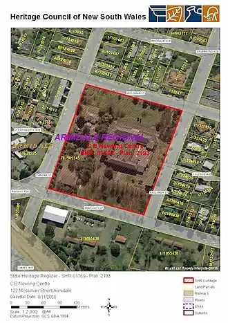 - ^ a b c d e f g h i j k l m n o p q r s t u v w x y z aa ab ac ad ae af ag ah ai aj ak al am an ao ap aq ar as at au av aw ax ay az ba bb bc bd be bf bg bh bi bj bk bl bm bn bo "C B Newling Centre". New South Wales State Heritage Register. Department of Planning & Environment. H01769. Retrieved 28 May 2018.