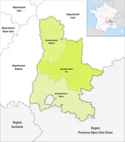 The borders of the arrondissements of Drôme were modified in January 2017:[3]