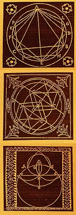 It may have been out of this atmosphere that there was formed a tradition which, going underground for centuries and suffering transformations in the process, appeared in the Middle Ages as the Ars Notoria, a magical art of memory attributed to Apollonius or sometimes to Solomon. The practitioner of the Ars Notoria gazed at figures or diagrams curiously marked and called 'notae' whilst reciting magical prayers. He hoped to gain in this way knowledge, or memory, of all the arts and sciences, a different 'nota' being provided for each discipline. The Ars Notoria is perhaps a descendant of the classical art of memory, or of that difficult branch of it which used the shorthand notae. It was regarded as a particularly black kind of magic and was severely condemned by Thomas Aquinas.[39]