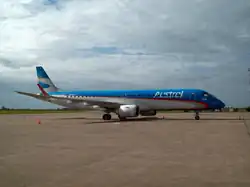 An Austral Líneas Aéreas Embraer 190 on the apron at Benjamín Matienzo International Airport in 2012.