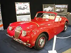 The first Aristocat model is also the most successful model. The vehicle is based on the Jaguar XJ 6. The subframe, axles and the six-cylinder engine are used by this vehicle. The customer can choose between 2800 cm3, 3400 cm3 and 4200 cm3 displacement. There is also a model with a twelve-cylinder engine with a displacement of 5300 cm3. The convertible body is similar to the Jaguar XK 140, but is not a direct replica and is wider than the original. Around 300 copies have been created since 1983.[4]