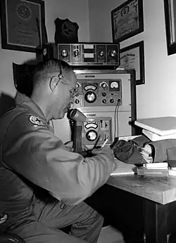 A military auxiliary radio system operator at Marine Corps Logistics Base Albany in Albany, Georgia in 1983