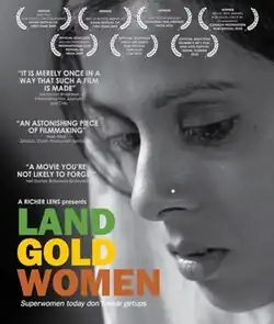 Land Gold Women is a 2011 British-Indian film written and directed by Avantika Hari, a graduate of the London Film School. The film is produced by Mumbai-based Vivek Agrawal. It is the first film in English that deals with the issue of honor killings.[2][3] The film won India's National Film Award for Best Feature Film in English, which was shared between Hari and Agrawal.[4] The award was presented by the President of India, Pratibha Patil.