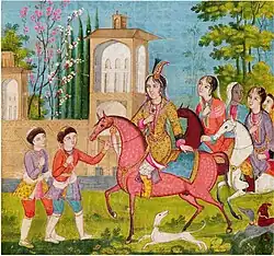 Around 1735 or 1736, Azar's father Agha Khan Bigdeli Shamlu was appointed governor of Lar and the coastal areas of Fars province by Nader Shah and Azar, and his family moved to Shiraz, the provincial capital of Fars.[11] In 1737 or 1738, after the death of his father, Azar made pilgrimages to Mecca and the Shi'ite shrines in Iran and Iraq.[12] His subsequent arrival in Mashhad coincided with Nader Shah's return from his successful Indian campaign. Azar subsequently enlisted in Nader's army and accompanied his troops to Mazandaran, Azerbaijan, and Persian Iraq.[13] After Nader's death in 1747, Azar served his nephews and successors Adel Shah (r.1747–1748) and Ebrahim Shah (r.1748), and the Safavid pretenders Ismail III and Suleiman II before retiring to his modest manor in Qom.[14]