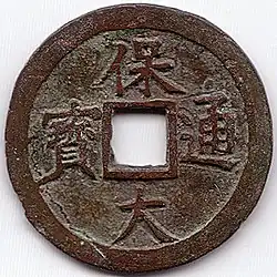 - ^ François Thierry de Crussol (蒂埃里) (14 September 2015). "Sapèques frappées de Bảo Đại 保大 - Struck cash coins of Bảo Đại - Bảo Đại thông bảo 保大通寳, «monnaie courante de [l'ère] Bảo Đại». Cuivre, Ø 18,3, 1,39 g. - La frappe des Bảo Đại thông bảo 保大通寳" (in French). TransAsiart. Archived from the original on 25 June 2008. Retrieved 24 April 2020.