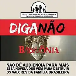 - ^ Na Telinha - Frente Parlamentar faz campanha pedindo boicote à "Babilônia", da Globo