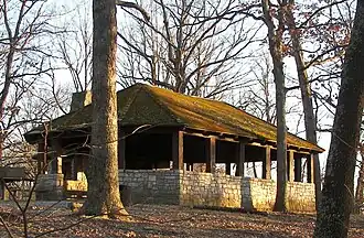 Babler State Park (formally, Dr. Edmund A. Babler Memorial State Park) is a public recreation area located in the northwest section of the city of Wildwood, Missouri. A large bronze statue of Dr. Babler greets park visitors. The state park's 2,441 acres (988 ha) offer opportunities for hiking, picnicking, bicycling, horseback riding, and camping.[3] The park is managed by the Missouri Department of Natural Resources.[3] It was added to the National Register of Historic Places in 1985.