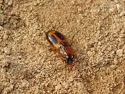 Badister bullatus is an orange and black ground beetle with a length of 5-6.55 millimeters.[3]