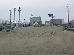 Because ban'ei racing is about strength and not speed, the winning time of major races is often slower than lower-class races, where even a small overtime can have a horse disqualified.[16][17] With suitable ground conditions, horses pulling lightly loaded sleds can clock speeds under 50 seconds.[18][19] The condition of the track is described using measured-moisture percentage.[20] The track is repaired manually during or between races. Watering is used to prevent excess dust from irritating horses and people.[21] Heating systems allow racing during the winter months.[22]