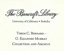 Theos C. Bernard – G. Eleanore Murray Collection and Archive bookplate provided by the California Digital Library