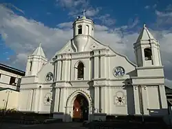 The church is a mix of Baroque architecture with Neoclassical features. Its facade has a mixture of Baroque, Gothic and Moorish embellishments. The Gothic features are present on the lancet-arched doorway and the choir loft windows; Renaissance features on the scallops framing the pediment; and Moorish features on the twin bell towers on the facade and another campanile on top of the pediment.[3] It is the only church in Northern Luzon and possibly on the entire Philippines to have three bell towers.[4]