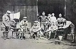 The forts could communicate with the outside by telephone and telegraph but the wires were not buried. Smaller fortifications and trench lines in the gaps between the forts had been planned by Brialmont but had not been built. The fortress troops were not at full strength and many men were drawn from local guard units, who had received minimal training due to the reorganisation of the Belgian army begun in 1911, which was not scheduled to be complete until 1926.[13] The forts also had c. 26,000 soldiers and 72 field guns of the 3rd Infantry Division and 15th Infantry Brigade to defend the gaps between forts, c. 6,000 fortress troops and members of the paramilitary Garde Civique, equipped with rifles and machine-guns.[14] The garrison of c. 32,000 men and 280 guns was insufficient to man the forts and field fortifications. In early August 1914, the garrison commander was unsure of the troops which he would have at his disposal, since until 6 August, it was possible that all of the Belgian army would advance towards the Meuse.[10]
