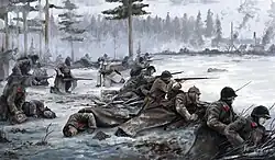 The Battle of Suomussalmi was fought between Finnish and Soviet forces in the Winter War. The action took place from 30 November 1939 to 8 January 1940. The outcome was a Finnish victory against superior forces. This battle is considered the clearest, most important, and most significant Finnish victory in the northern half of Finland.[4] In Finland, the battle is still seen today as a symbol of the entirety of the Winter War itself.