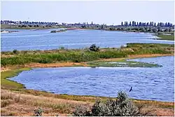 A peresyp (пересыпь), is a Russian hydrological term name for a mouth bar, an element of a deltaic system. A peresyp or mouth bar is a deposit of the sediment transported by the river—i.e., a shoal or sandbar—at the river mouth, typically in mid-channel.[1][2]This narrow sandbar rises above the water level like a spit and separates a liman (a Russian word for any estuary lagoon on the Black Sea coast) from the open water.