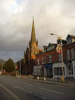 The Rylands was originally a small settlement around Beeston Lock, comprising some tens of houses and two pubs. The name now refers to all of the area south of the railway line. The Jolly Angler was originally on the river side of the canal, but has since moved.[22] Beeston began to spread south of the railway line in the late 19th century, when a few Victorian villas were built near the level crossing by the station.