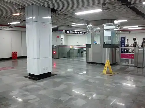 Beiyangjing Road (simplified Chinese: 北洋泾路; traditional Chinese: 北洋涇路; pinyin: Běiyángjīng Lù) is a station on Line 6 of the Shanghai Metro.[1] It began services on December 29, 2007. There are two side platforms, and the station's main color is blue. There are three exits, all of which are on Zhangyang Road.