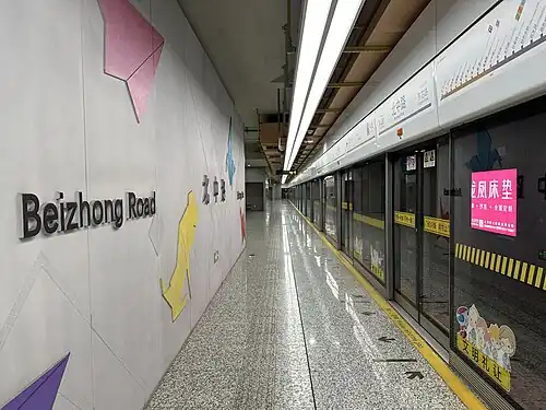 Beizhong Road (Chinese: 北中路) is a station on Line 18 of the Shanghai Metro. Located at the intersection of Beizhong Road and Lianxi Road in Pudong, Shanghai, the station opened with the rest of phase one of Line 18 in 2021.[1][2][3]